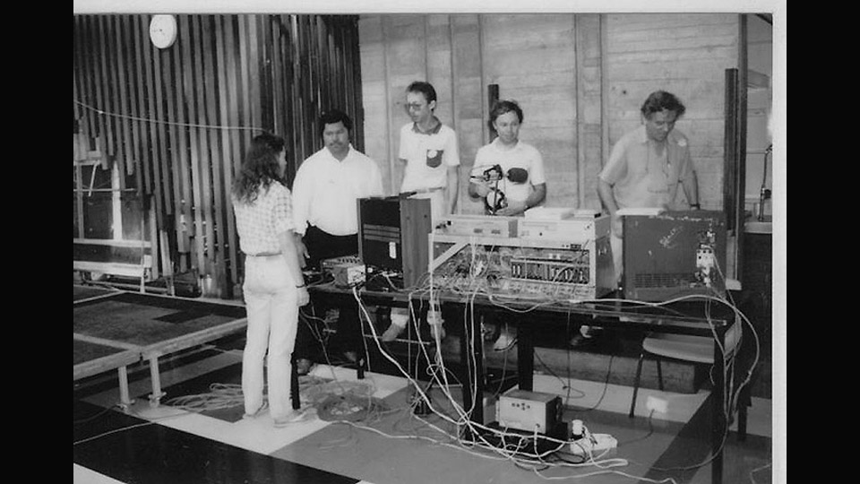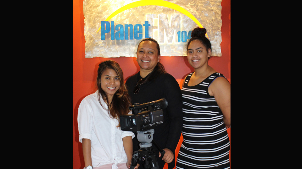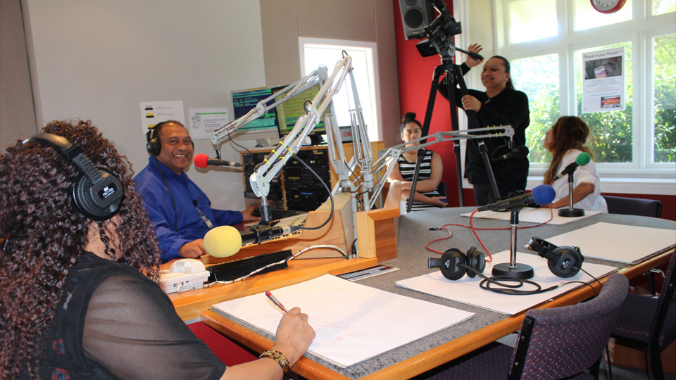 AUT first year Media students in Studio 1 with Takanga 'Enau Fohe